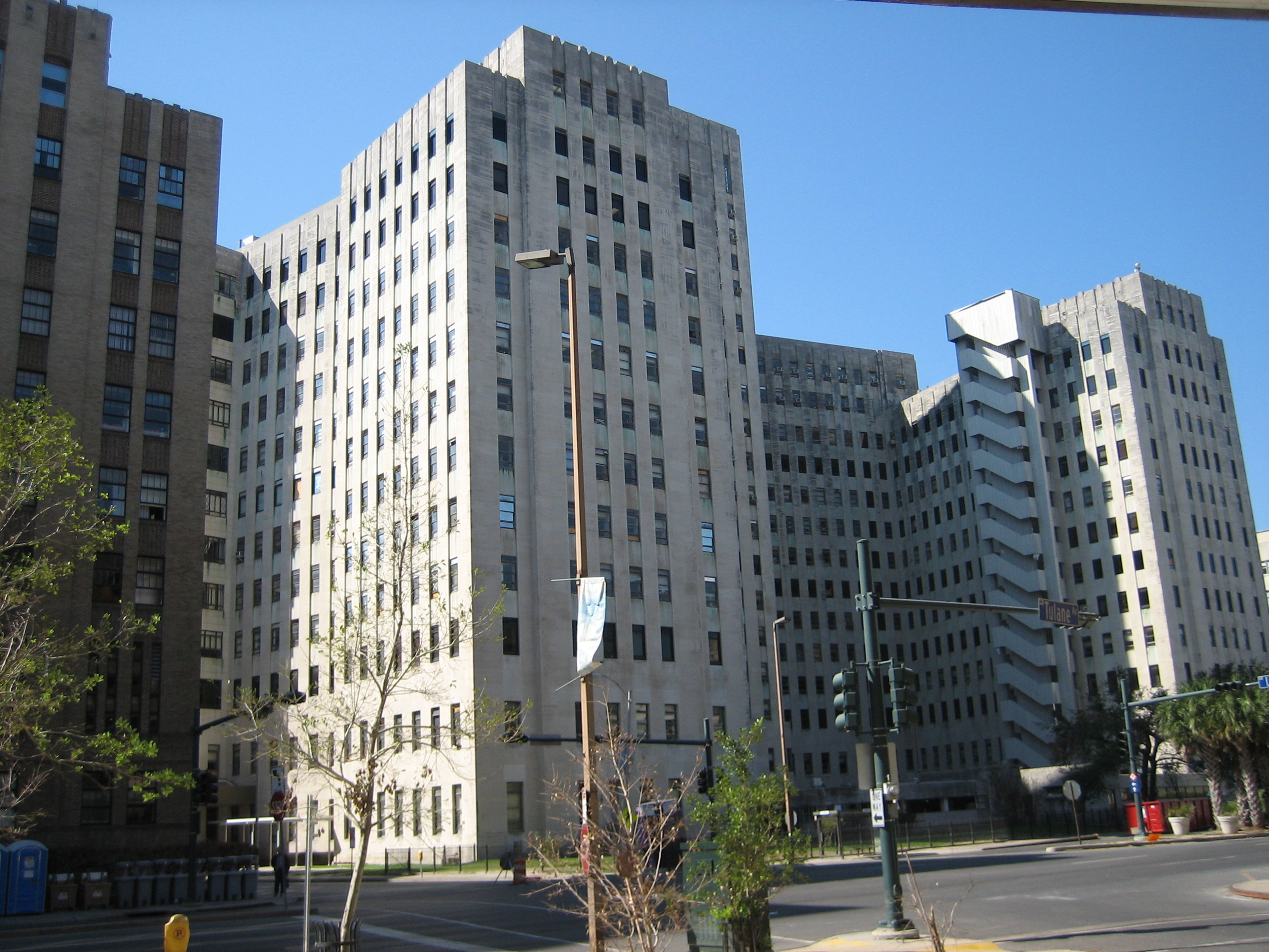 Het Charity Hospital gebouw strekt zich uit over 20 verdiepingen aan de Tulane Avenue, met kalkstenen muren en architectonische elementen uit de Art Deco periode.