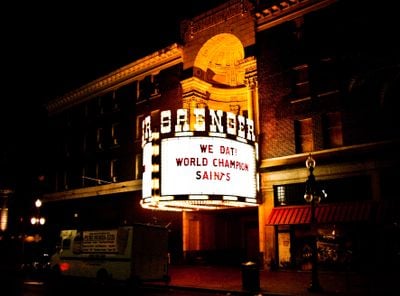 Het Saenger Theater in de Franse Wijk beschikt over professionele geluidssystemen en biedt regelmatige programmering voor verschillende entertainmentevenementen.