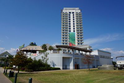 Het Margaritaville Resort Casino strekt zich uit langs de Red River en combineert moderne speelfaciliteiten met restaurants en entertainmentruimtes.