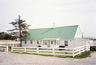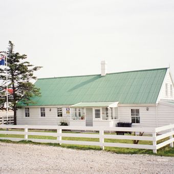 Bezoekers kunnen het gebouw bekijken vanaf Ross Road, tegenover het Malvina House Hotel in het centrum van Stanley.