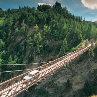 Skippers Canyon strekt zich uit langs de Shotover River met steile rotswanden die zich winden door leisteenformaties. De vallei werd over miljoen jaren gevormd door water en steen, en toont vandaag gelaagde patronen in de rotswand.