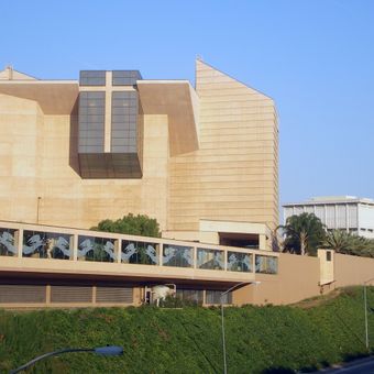 De Cathedral of Our Lady of the Angels is een katholieke kathedraal in het centrum van Los Angeles, gebouwd met hoekige betonnen muren en een modern ontwerp dat breekt met oudere kerkelijke tradities. De lichtbruine betongevel wordt onderbroken door smalle ramen van albast die zonlicht de gebedsruimte binnenfilteren.
