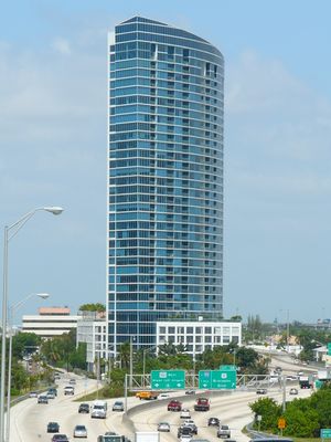Blue on the Bay is een woonflat in Edgewater met 37 verdiepingen die ongeveer 130 meter hoog reikt, met wooneenheden en winkelruimte. De structuur ligt aan Northeast 5th Avenue met commerciële ruimten op de eerste drie niveaus en woonappartementen op de verdiepingen erboven.