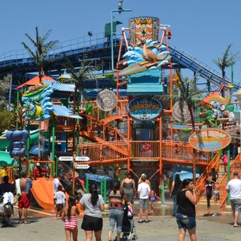 South Bay Shores is een waterpark in Santa Clara met meerdere glijbanen, twee zwembaden, een luie rivier en speelzones op 11 hectare binnen California's Great America. De faciliteit biedt verschillende secties voor diverse activiteiten en leeftijdsgroepen.