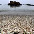 Mariene processen transformeerden weggegooide glazen flessen in kleine, gepolijste fragmenten die nu een kenmerkende laag vormen op het strandoppervlak.