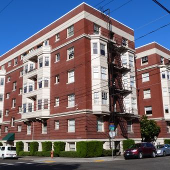 Het American Apartment Building telt vijf verdiepingen aan 2083 NW Johnson Street, met een buitenconstructie van baksteen en beton uit 1911.