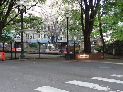 Dit is Portlands eerste omheinde stadspark, een ongewone ontwerpkeuze voor een openbare ruimte. Het hekwerk werd gekozen om een veilig hondengebied en een gedefinieerde groene ruimte in het centrum te creëren.