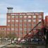De zuidgevel van het gebouw toont geschilderde advertenties op de graansilo's met historische producten van de molen.