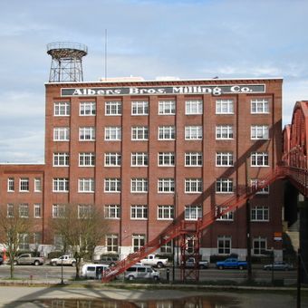 Albers Brothers Milling Company, Historische molen aan de Willamette River in Portland, Verenigde Staten.
