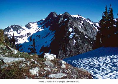 Mount La Crosse bereikt een hoogte van 1.956 meter in het Olympic Mountains gebergte met steile hellingen en rotsformaties.