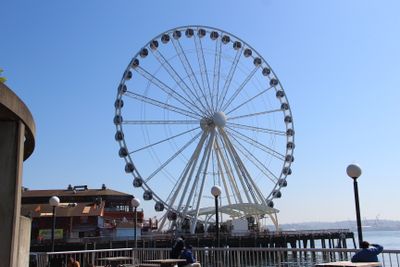 Het reuzenrad steekt 12 meter uit over Elliott Bay en is de enige constructie van dit type gebouwd boven water in Noord-Amerika.
