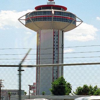 Het Landmark Hotel and Casino had een toren van 91 meter met een achthoekige plattegrond en een koepel in bolvorm nabij de Strip.