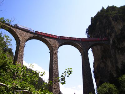 Het viaduct maakt deel uit van de Rhätische Bahn in het UNESCO-werelderfgoed en vertegenwoordigt de Zwitserse technische expertise in bergspoorwegen.