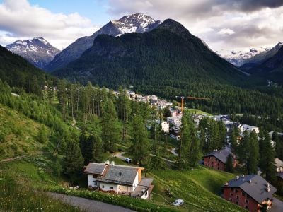 Pontresina is een alpendorp in de regio Maloja op ongeveer 1.800 meter hoogte, omgeven door toppen zoals Piz Bernina en Piz Palü. Het dorp wordt gekenmerkt door grootse hotels uit de 19e eeuw en traditionele huizen met stenen muren die langs nauwe steegjes rond de centrale kerk zijn gerangschikt.