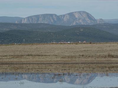 De Hermit Peak verheft zich tot 3129 meter in het Sangre de Cristo gebergte, met steile kliffen aan de oost- en zuidzijde.