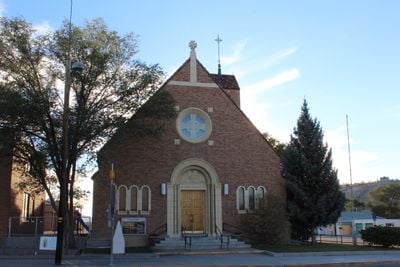 Het architectenbureau Maginnis & Walsh ontwierp dit religieuze gebouw in 1932, met traditionele katholieke kerkelementen in het landschap van Wyoming.
