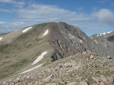 Mount Edwards bereikt een hoogte van 4.221 meter in de Front Range, met steile besneeuwde hellingen aan de noordzijde en geleidelijkere paden in het oosten.