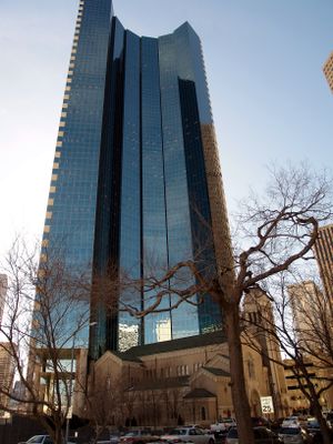 Het gebouw incorporeert de reeds bestaande Holy Ghost Catholic Church aan zijn voet, wat aantoont hoe een religieus gebouw werd behouden in een modern commercieel project. Deze combinatie creëert een interessant contrast tussen de hedendaagse toren en de historische kerk die eronder blijft.