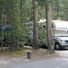 Canyon Campground bevindt zich in een dicht dennenbos in Yellowstone National Park, met kampeerplaatsen tussen hoge groenblijvende bomen.