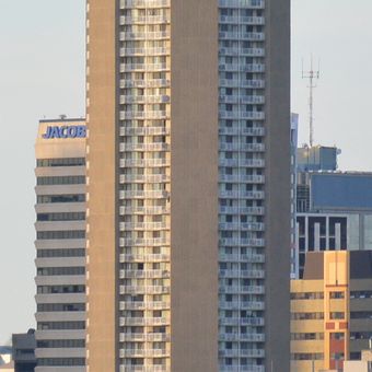 Edmonton House bereikt een hoogte van 121 meter met 45 verdiepingen van staal, glas en beton in het centrum van Edmonton.