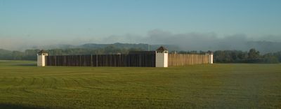 Fort Carlton staat langs de North Saskatchewan River met gereconstrueerde gebouwen die de Red River architectuurstijl van vroege Canadese nederzettingen tonen.