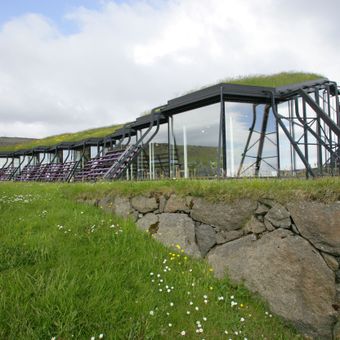 Het dak is bedekt met gras en werd gebouwd met stalen steunen om bestand te zijn tegen de felle stormen die op de Faeröer veelvoorkomend zijn. Dit ontwerp voegt traditionele bouwmethoden samen met modern engineering om zich aan de ruwe omgeving aan te passen.