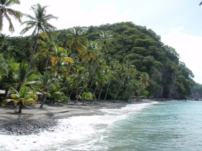 Anse Mamin, Zwart zandstrand in het district Soufrière, Saint Lucia.