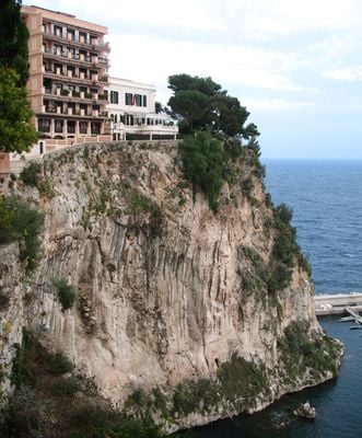 De kustkaap strekt zich uit in de Middellandse Zee en vormt een natuurlijke barrière die de zuidelijke grens van de Haven van Fontvieille markeert.