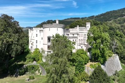 Het kasteel werd halverwege de 19e eeuw herbouwd in een ongebruikelijke stijl die Engelse en middeleeuwse invloeden mengt. Deze bijzondere architectuur maakt het tot een opvallend oriëntatiepunt dat duidelijk uitsteekt boven andere structuren in de regio.