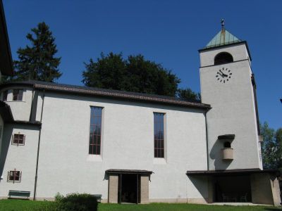 Het interieur toont fresco's van Ernst Nepo uit 1935 en latere werken van Max Weiler uit 1945, die verschillende artistieke benaderingen van religieuze thema's laten zien. Bezoekers kunnen zien hoe deze twee artistieke perioden naast elkaar bestaan, wat aantoont hoe de visuele stijl in slechts een decennium veranderde.