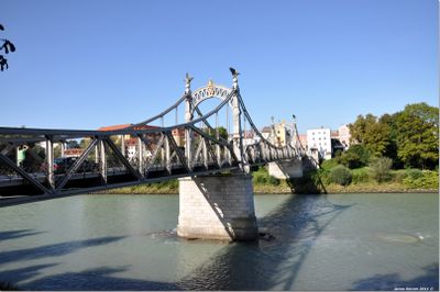 De brug toont twee verschillende wapens: het Beierse embleem aan de ene kant en het Oostenrijkse symbool aan de andere kant. Deze wapens weerspiegelen dat de constructie twee landen verbindt en een internationale grens kruist.
