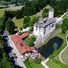 Het kasteel herbergt een gotische kapel met barok altaar, een tongewelfde ridderzaal en een bibliotheek met historische jachttrofeeën.
