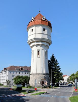 De Wasserturm in Wiener Neustadt is een cilindrische structuur die boven het stadslandschap uitstijgt en water voor het lokale leveringsnetwerk opslaat. Het gebouw heeft een stalen reservoir bovenop de zuil en wordt bekroond met een mansardedak.