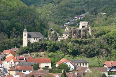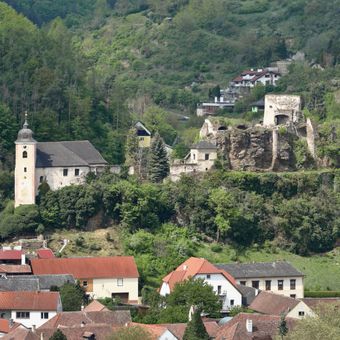 De overblijfselen van kasteel Rehberg staan op een rotsachtige uitloper waar het Frauenbachdal en het Kremsdal samenkomen.