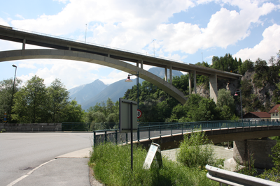 L16-Innbrücke, Betonnen boogbrug in Arzl im Pitztal en Karrösten, Oostenrijk.