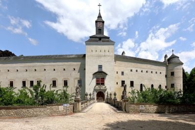Het kasteel toont kunstcollecties met Italiaanse meubels, Spaanse lederen behang en religieuze objecten uit meerdere eeuwen. Bezoekers kunnen voorwerpen zien die de artistieke verbindingen tussen Italie, Spanje en Midden-Europa tonen.