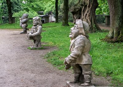 De beelden waren uit lokaal marmer van Untersberg gesneden en stellen mensen in verschillende beroepen en rollen voor, zoals een tuinman met een opvallend fysiek kenmerk en figuren die spelen. Deze verscheidenheid laat zien hoe het barokke hof figuren verzamelde die de diversiteit van het menselijk leven weerspiegelden.