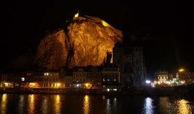 Dinant strekt zich uit langs de Maasvallei met rotsachtige kliffen waarop de Collegiale Kerk en de citadel zich bevinden.