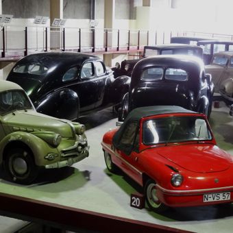 Het museum illustreert de evolutie van transport door complete voertuigen, chassis, motoren en miniatuurmodellen in speciale educatieve ruimtes.