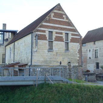 Het kasteel bestaat uit twee parallelle gebouwen met een oostvleugel die een ronde toren heeft, gebouwd uit mergelsteen met gotische gewelven.