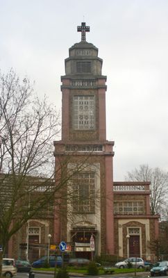 De kerk, voltooid in 1925 onder leiding van architect Jean Combaz, vertegenwoordigt een vroeg voorbeeld van modernistische religieuze architectuur.
