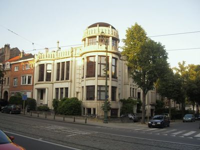 Het gebouw bevat ingewikkelde marmerwerken en gehamerd smeedijzeren ontwerpen, bijzonder opmerkelijk in de toegangsdeur aan de Brugmannlaan zijde.