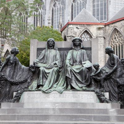 Hubert & Jan van Eyck, Bronzen en blauwe hardsteen sculptuur in Gent, België.