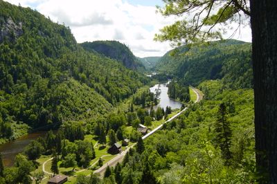 De kloofwanden rijzen 175 meter boven de Agawa Rivier uit, met vier watervallen en dichte bossen van het Canadese Schildlandschap.