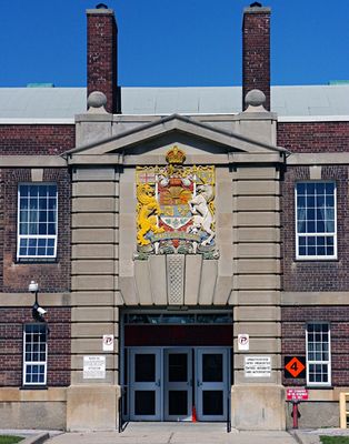 Het gewelfde betonnen dak hier is een van de grootste gewapend betonnen gewelven gebouwd in Canada in de jaren 1930 en toont engineering innovatie uit die periode. De grote ramen overstromen het interieur met natuurlijk licht, waardoor de trainingsruimte ongewoon helder is voor een militair complex.