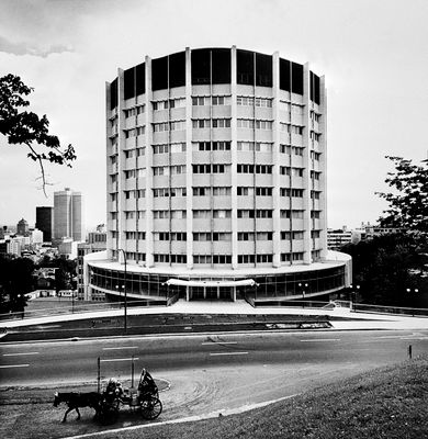 De cirkelvormige structuur, voltooid in 1966 door architect Janet Leys Shaw Mactavish, staat op de voormalige locatie van het herenhuis van magnaat Duncan McIntyre.