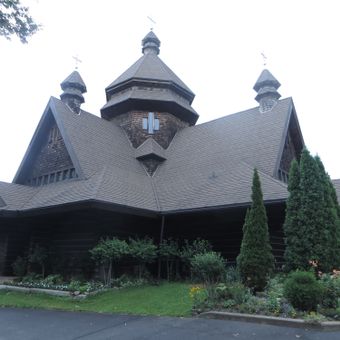 De Oekraïense katholieke St. Mary kerk vertoont Karpatische architectuurelementen met Oost-Europese invloeden in haar structuur.