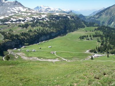 Gelegen op 1.645 meter hoogte strekt Älggi-Alp zich uit over groene weiden, omringd door bergtoppen zoals Seefeldstock, Chli Haupt en Brünig-Haupt.