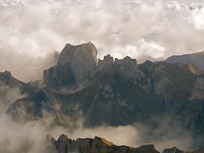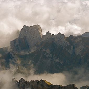 De Freiheit-top bereikt een hoogte van 2.140 meter en maakt deel uit van het Alpstein-massief met zijn kalkstenen kliffen.