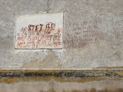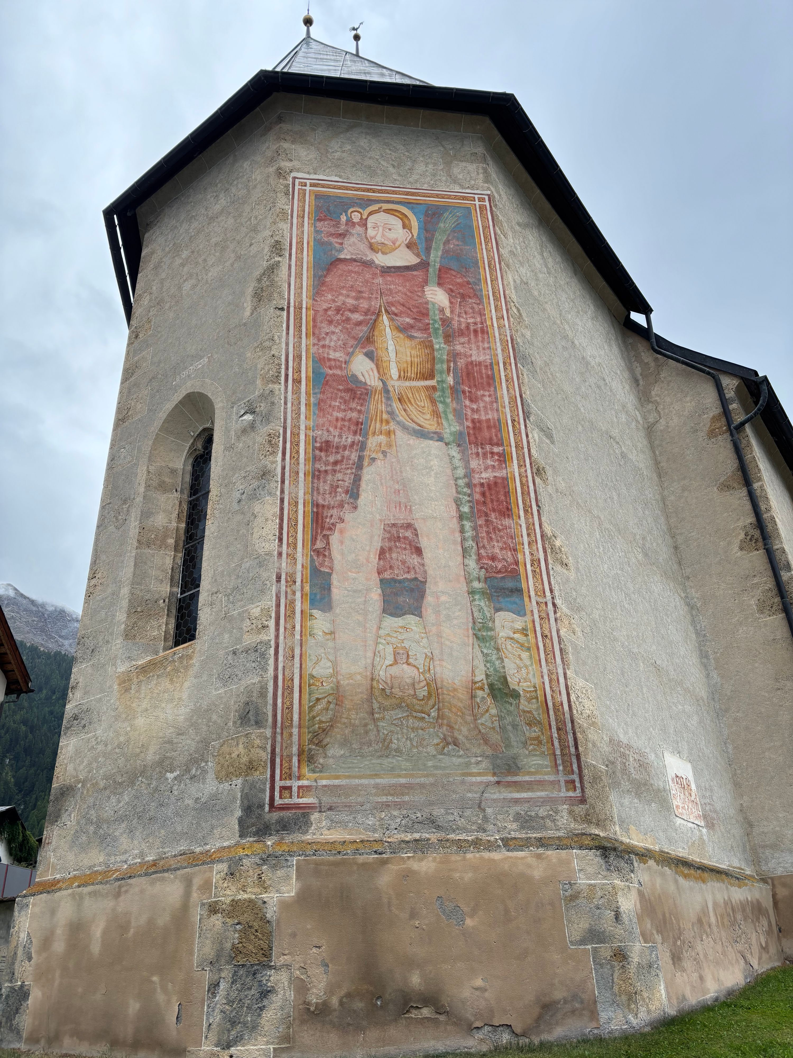 De noordoostelijke muur toont een monumentaal Christoforus-schilderij uit 1513, gemaakt door een meesterkunstenaar uit Zuid-Tirol.